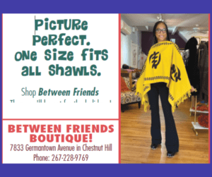 Between Friends Boutique, 7833 W. Germantown Avenue, in the Chestnut Hill section of Philadelphia is the boutique. This shop explodes with vibrant, soothing hues on cotton, silk, linen and other fabrics for garments. Jewelry, scarfs, and shawls abound to accessorize a present wardrobe or to compliment an outfit purchased at the boutique. “Shopping is better when done with a friend” is the branding phrase of this sophisticated boutique. Come with friends but if you come alone, the two co-owners or the boutique manager will become genuine friends during your shopping experience.